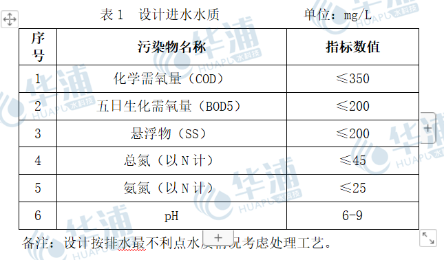 根據(jù)建設(shè)方提供的相關(guān)資料,結(jié)合同類型工程經(jīng)驗(yàn),確定系統(tǒng)主要污染物及其設(shè)計(jì)進(jìn)、出水質(zhì)指標(biāo)如下: