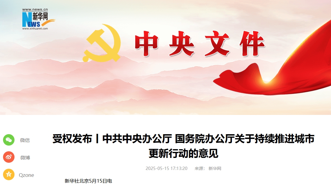 中共中央辦公廳國(guó)務(wù)院辦公廳關(guān)于持續(xù)推進(jìn)城市更新行動(dòng)的意見(jiàn)